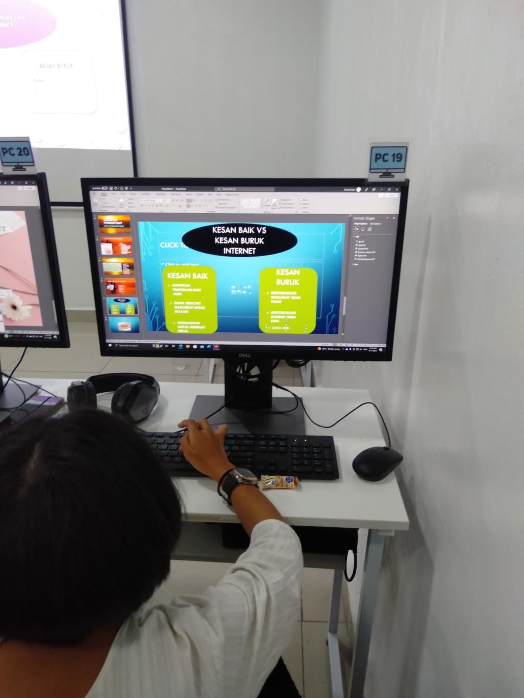 Petugas telah memberi panduan tentang cara-cara menaip, cara menggunakan Microsoft Word seperti membuat carta organisasi, jadual dan carta bar. Selain itu, beliau juga diajar tentang cara membuat slide yang menarik menggunakan Microsoft PowerPoint. Tambahan pula, adik Akma turut belajar cara-cara untuk membuat poster yang menarik menggunakan aplikasi Canva.